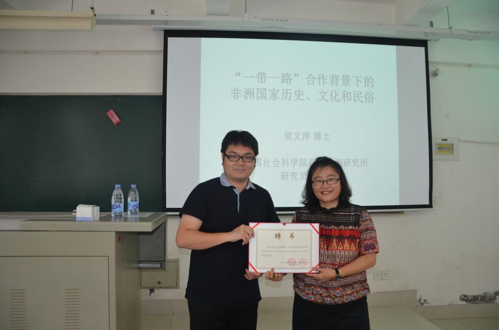 2018年5月14日上午,中国社会科学院蓝迪国际智库首席专家、中国社科院西亚非洲研究所首席研究员、博士生导师、中国社科院贺文萍教授莅临我院,为永利集团304am登录师生带来了一场题为“一带一路合作背景下的非洲国家历史、文化和习俗”的精彩讲座。贺文萍教授毕业于北京大学永利集团304am登录,长期致力于非洲问题研究,考察过二十多个非洲国家,十分熟悉非洲的情况。