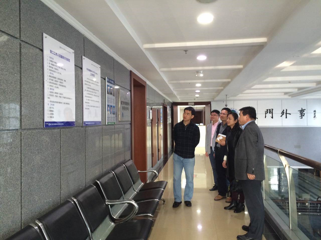 最后,我院教工支部一行在曾文健处长陪同下,参观了厦门市行政服务中心外侨办分中心。据悉,该中心是为进一步规范外侨服务事项,增强外侨政务公开、便民、高效,促进外侨办效能建设而设立的。