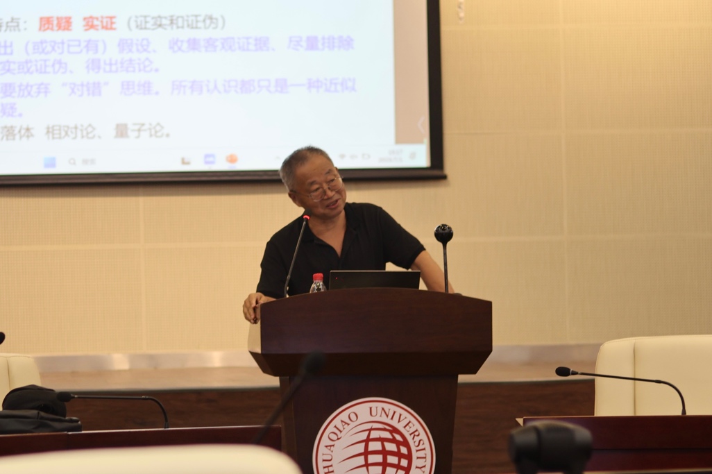 尚会鹏教授首先从自然科学和社会科学研究方法的发展进程切入,指出了“文明”和“科学”是研究方法的核心宗旨,从而辨析了科学方法、伪科学方法和非科学方法之间的区别。尚教授以检验医学药物疗效的“双盲随机大样本对照试验”为例,建议在运用科学方法撰写论文时,应关注证据是否充分、文献是否可靠、推理是否正确、样本的数量和代表性以及个案的特殊性,为同学们撰写更具科学性的论文提供了宝贵建议。