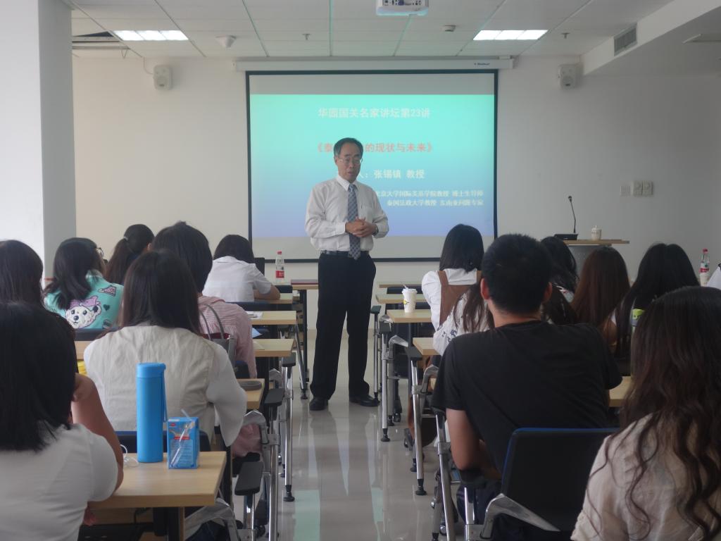 敦聘仪式结束后,张锡镇教授为全院师生主讲华园国关名家讲坛第23讲“泰国政治的现状与未来”。